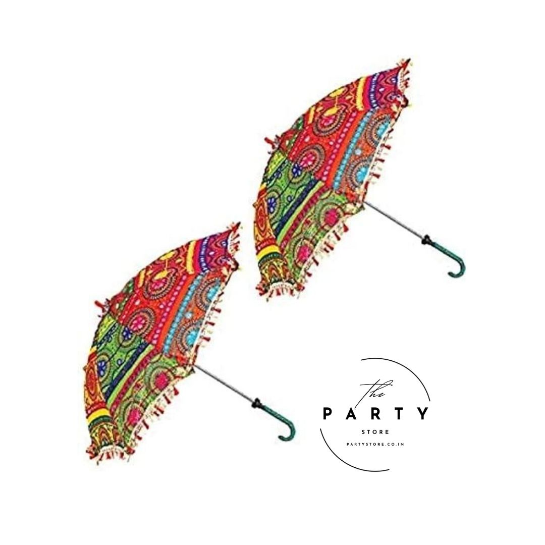 Sun Protection Handmade Rajasthani Umbrella Handicraft Walking Stick for Haldi, Mehndi, Navratri, Party Decorations